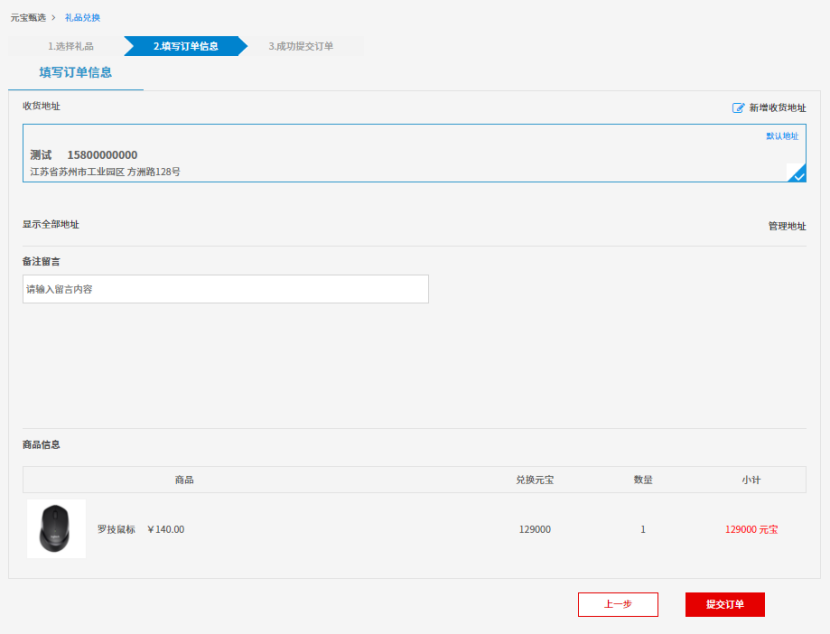 3.选择收货地址,提交订单即可兑换商品: