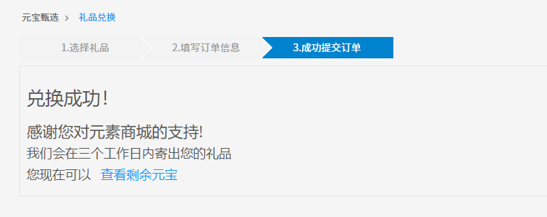 6.元宝甄选每次可兑换一个礼品,如需兑换多个礼品,请重复每次兑换步骤;